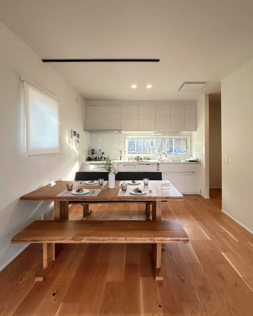 ベンチのファブリックは落ち着いたグレーを採用し、
